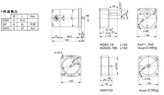 07 SP/SWG/SGN 直流馬達額定規格