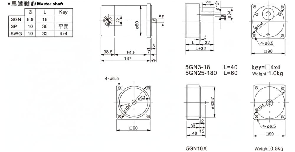 Home / 直流馬達 / 10 SP/SWG/SGN / 10 SP/SWG/SGN 直流馬達額定規格
